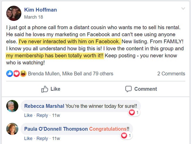 Btw, that screenshot came from one of my “Inner Circle” members? Oh, what’s that you ask? For now, let’s just say that I have a knack for helping agents like yourself stay top-of-mind on social media…