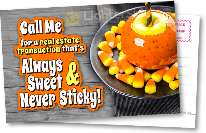 Postcard Marketing Tip #3: Keep it light. For these postcards, you might want to say something like: “Buying or selling a home might seem scary, but don’t get spooked! I’m batty about real estate, and I can help you! Call me if you’re ready to buy a boo-tiful new home (or to sell your current one)! Happy Halloween!”